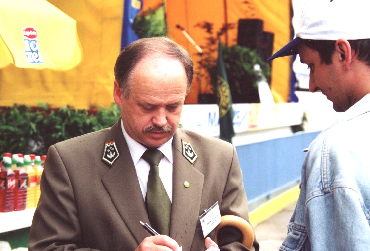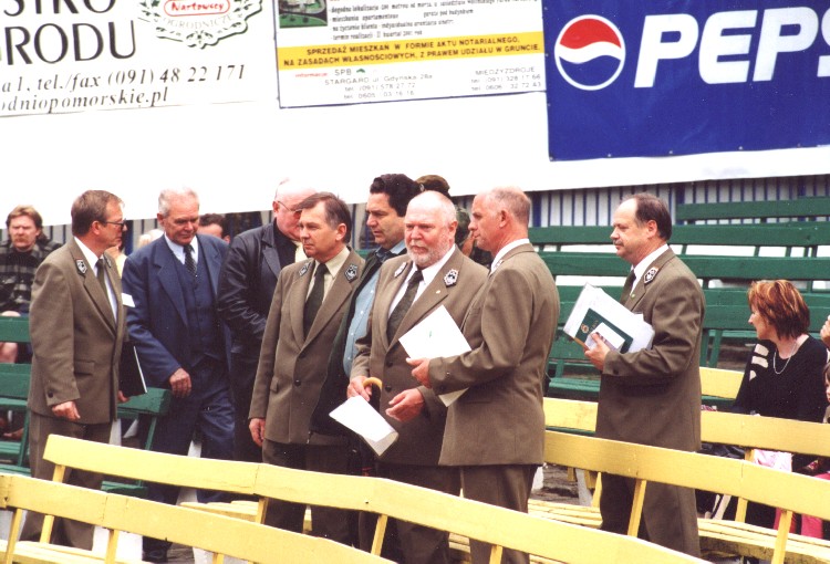 Leśne VIP-y na zakończeniu Rajdu (w mundurach, od lewej): Stanisław Kmiecik (komandor Rajdu), Stanisław Lewicki (Dyrektor Wolińskiego PN), Jerzy Data (Dyrektor RDLP Szczecin), Janusz Zaleski (wicedyrektor DGLP), Bronisław Sasin - główny organizator Rajdu